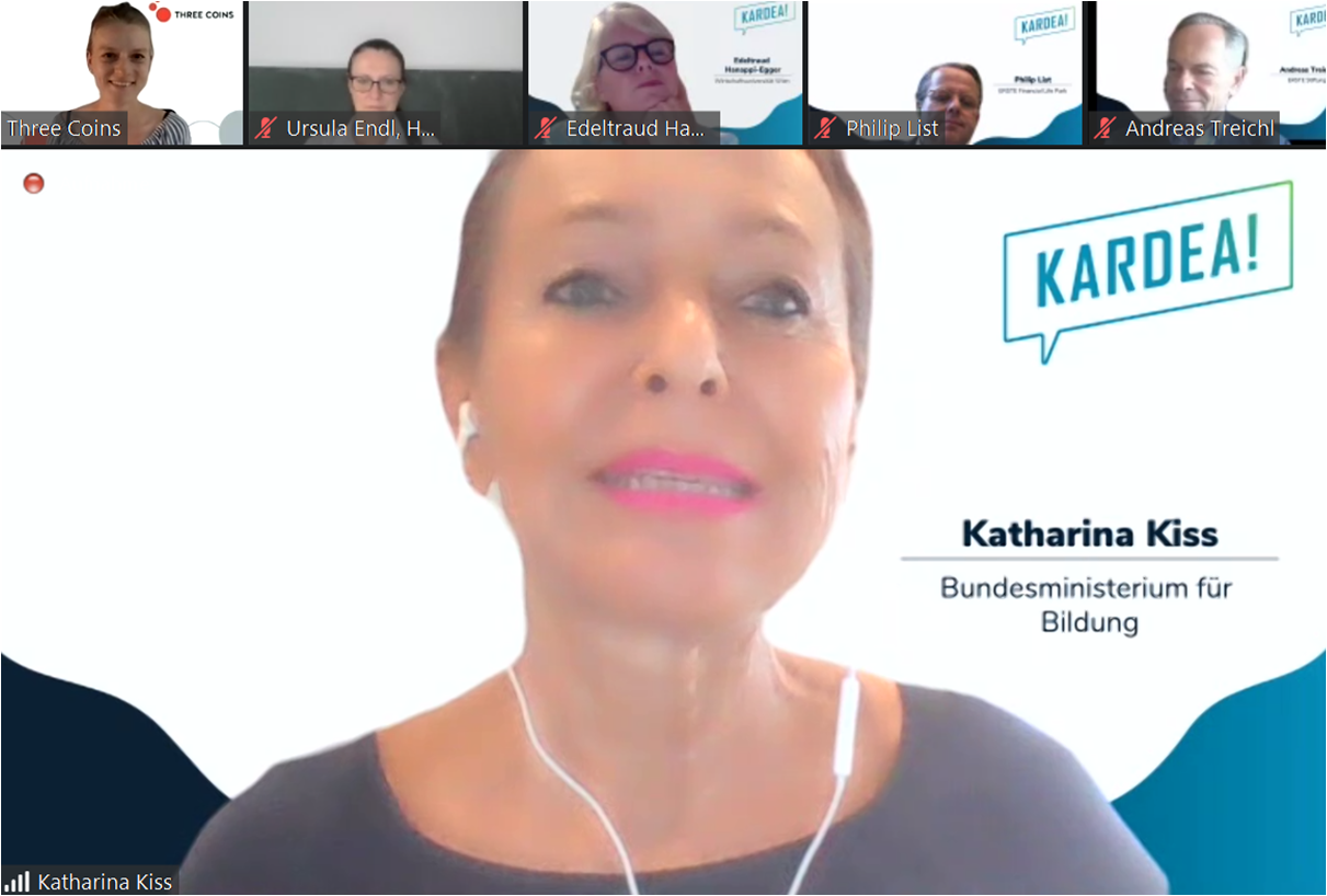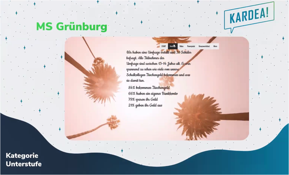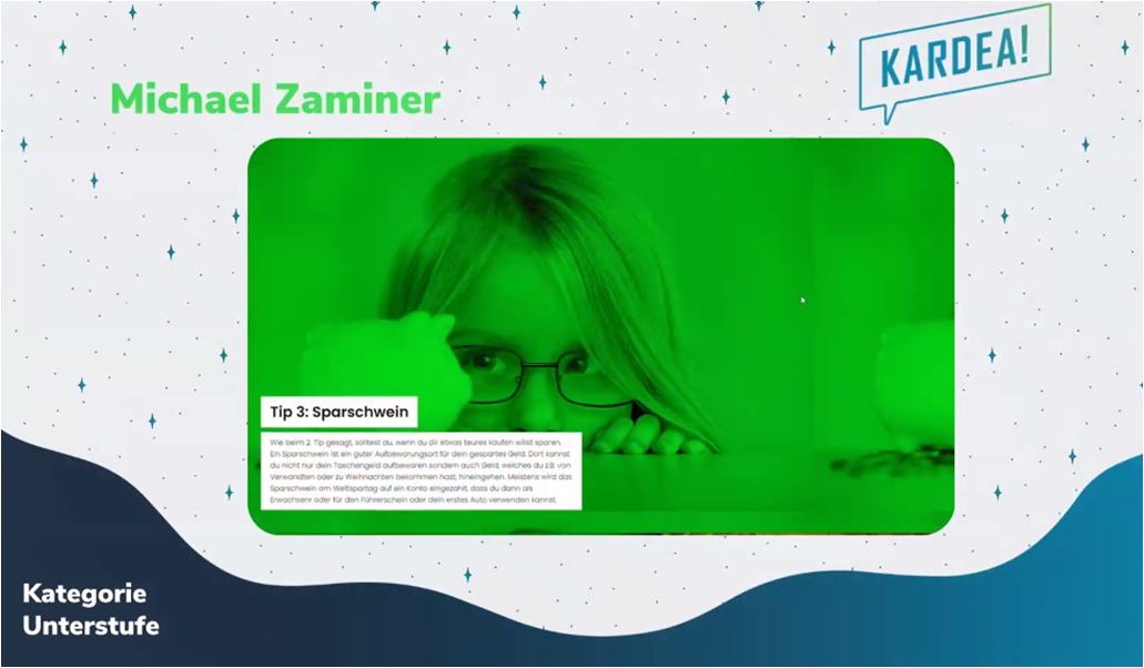 Und auch bei der Preisverleihung freuten wir uns über die Anwesenheit dieser Ehrengäste sowie von Vertreterinnen der Jury und natürlich zahlreicher Schülerinnen und Schüler mit ihren Lehrkräften. Besonderes Highlight war eine persönliche Videobotschaft des Finanzministers Gernot Blümel an die Preisträger*innen!