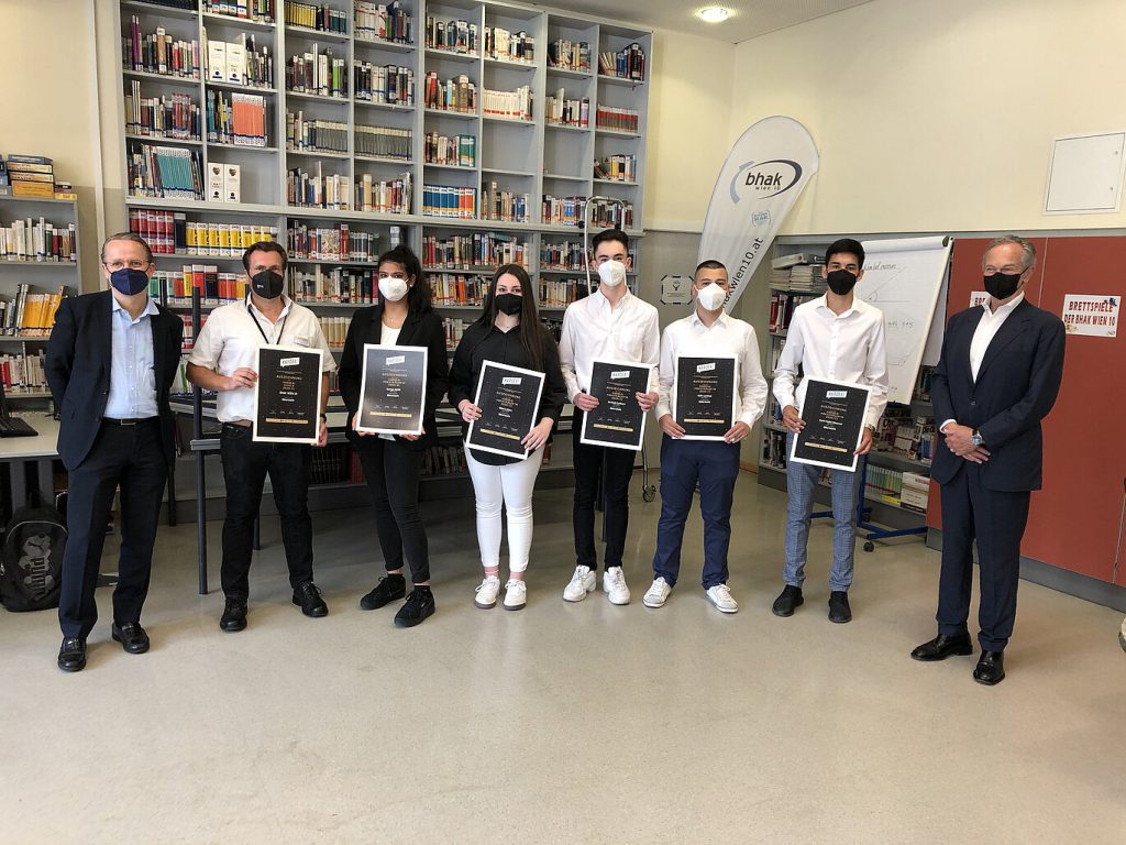 - Andreas Treichl, Vorsitzender des Aufsichtsrats der ERSTE Stiftung, überreichte die Urkunden an der BHAK Wien 10.
