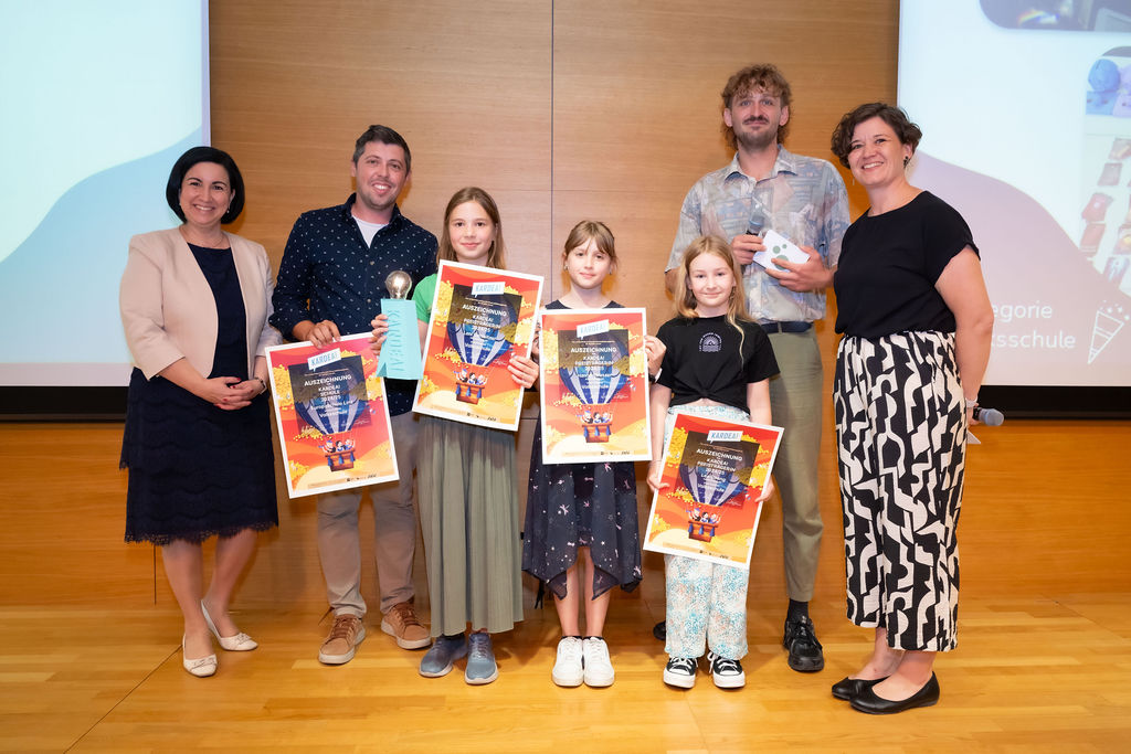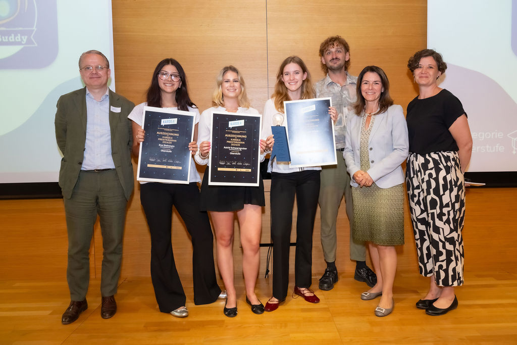 Bei der festlichen Veranstaltung wurden elf besonders herausragende Projekte aus fünf Bundesländern ausgezeichnet. Über 250 Gäste – darunter zahlreiche Schüler:innen, Expert:innen und Vertreter*innen der Partnerinstitutionen – nahmen teil. Staatssekretärin Barbara Eibinger-Miedl wandte sich in einer persönlichen Videobotschaft an die Preisträger:innen und würdigte das beeindruckende Engagement der Schüler:innen. Weitere Ehrengäste waren u.a. JKU-Rektor Stefan Koch, FLiP-Direktor Philip List, ERSTE Stiftung-Vorstandsmitglied Gudrun Egger, Sparkassen-Generaldirektorin Stefanie Huber sowie der Leiter des Instituts für Wirtschafts- und Berufspädagogik Georg Hans Neuweg. Der Auftritt von Revolution Dance war neben den Preisträger:innen eines der Highlights der Preisverleihung.