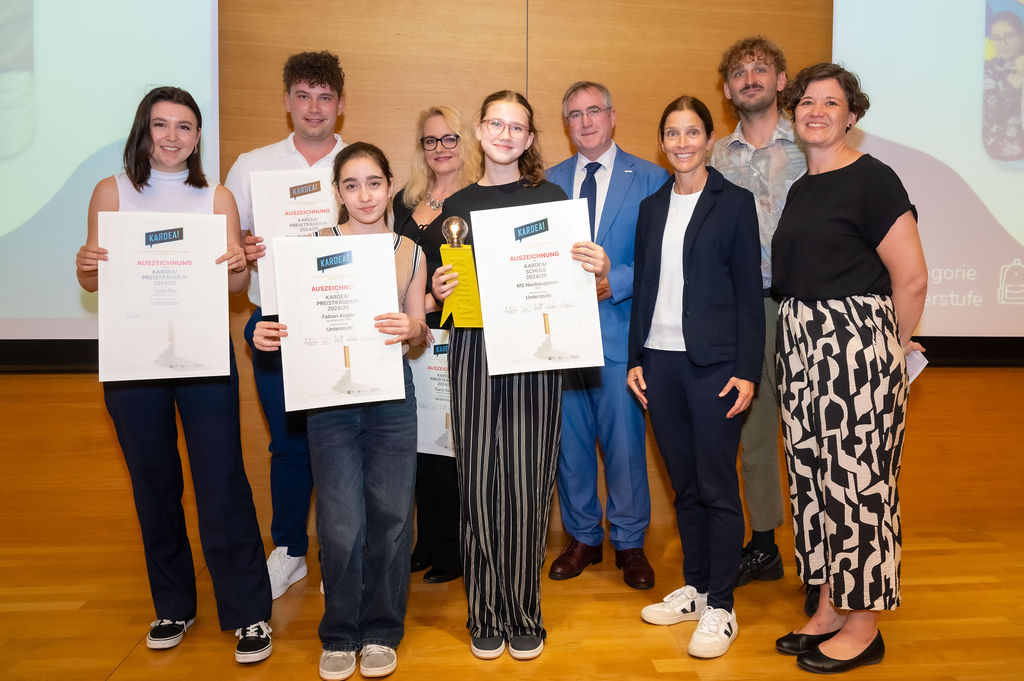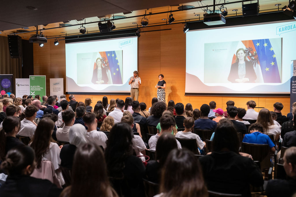 Erstmals wurde die KARDEA! Preisverleihung an der Johannes Kepler Universität Linz abgehalten. Mit annähernd 150 Einreichungen wurde ein neuer Rekord verzeichnet – ein klares Zeichen, wie wichtig das Thema Finanzbildung für junge Menschen in Österreich ist. In feierlichem Rahmen wurden 11 herausragende Projekte ausgezeichnet. Die Bandbreite der Ideen war beeindruckend: Von kreativen Podcasts über zielgerichtete Informationskampagnen bis hin zu interaktiven Formaten, die Themen wie Konsumverhalten, Werbung und Schuldenprävention aus völlig neuen Perspektiven beleuchteten. Die Schüler*innen bewiesen eindrucksvoll, wie sie Finanzbildung selbst und innovativ gestalten wollen – praxisnah, altersgerecht und voller Ideenreichtum.